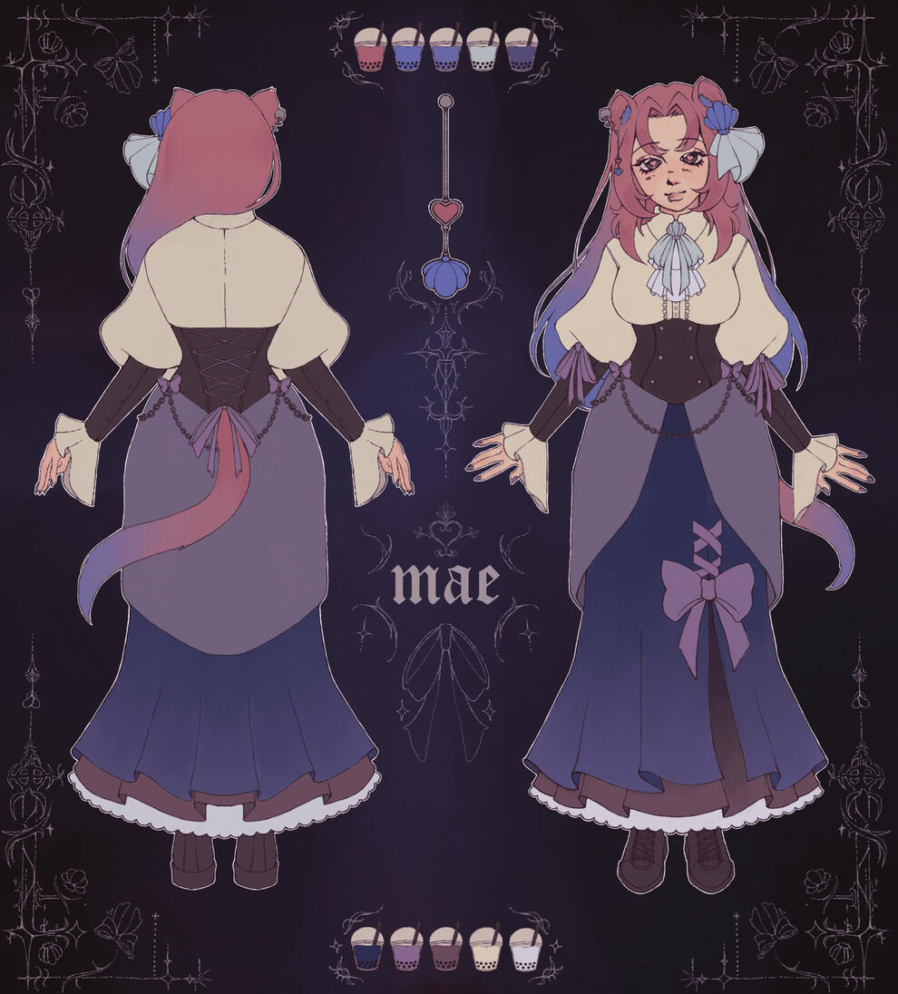 Hello, I’m Mae! I'm a Vtuber on Twitch and I like boba, visual kei (jrock/jmetal, video games such as resident evil and more! Let's start this journey in the afterlife together <3